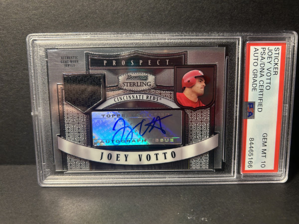 Up for grabs is a 2000 Bowman Sterling prospects autographed jersey patch of Cincinnati Reds legendary first baseman Joey Votto ..
