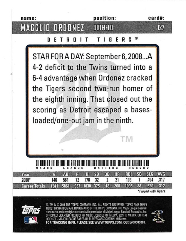 2009 TOPPS TICKET TO STARDOM #127 MAGGLIO ORDONEZ