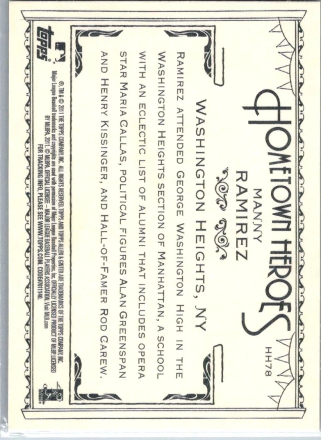 This is a nice example of a 2011 Topps Allen & Ginter #HH78 Manny Ramirez Hometown Heroes