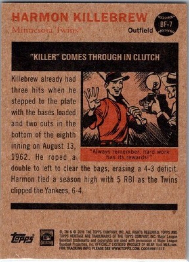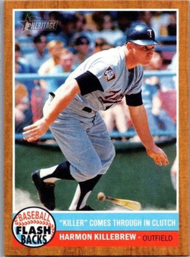 This is a nice example of a 2011 Topps Heritage #BF-7 Harmon Killebrew Baseball Flashbacks
