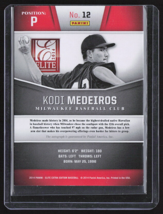 You are purchasing a 2014 Panini Elite Extra Edition Kodi Medeiros #12 Red 100/399. You will receive the exact item in the photographs. Thank you for looking.