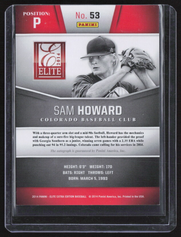 You are purchasing a 2014 Panini Elite Extra Edition Sam Howard #53 755/799. You will receive the exact item in the photographs. Thank you for looking.