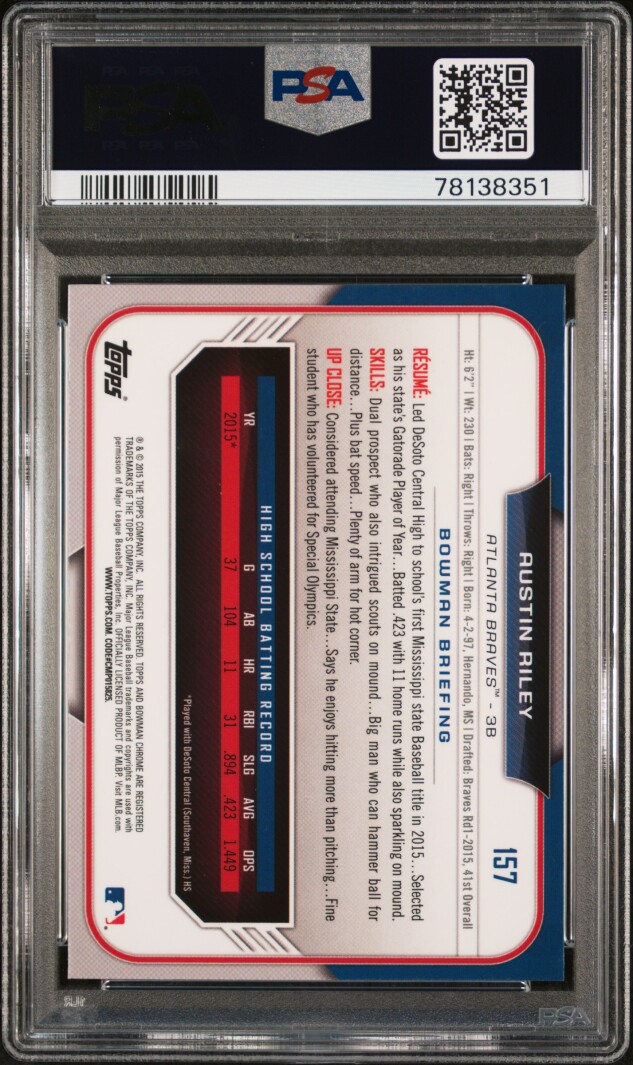 2015 Bowman Draft Austin Riley Chrome-Sky Blue Ref.