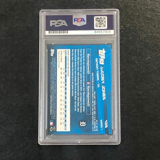 This listing features a 2017 Topps #139 Jacoby Jones, professionally PSA authenticated.