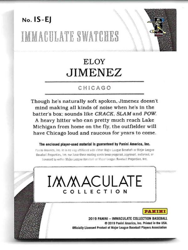 2019 IMMACULATE COLLECTION IMMACULATE SWATCHES #IS-EJ ELOY JIMENEZ (#26/49)