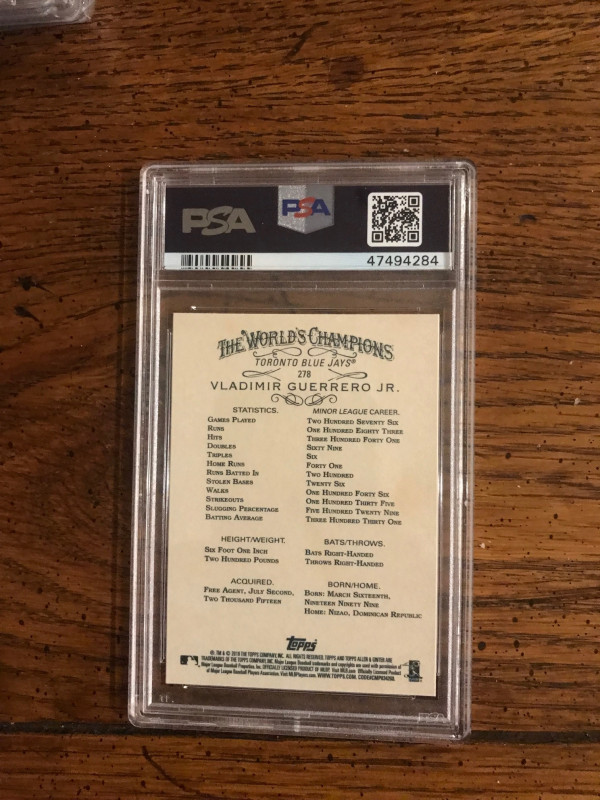 Vladimir Guerrero Jr. Rookie 2019 Topps Allen & Ginter. Graded PSA 10.