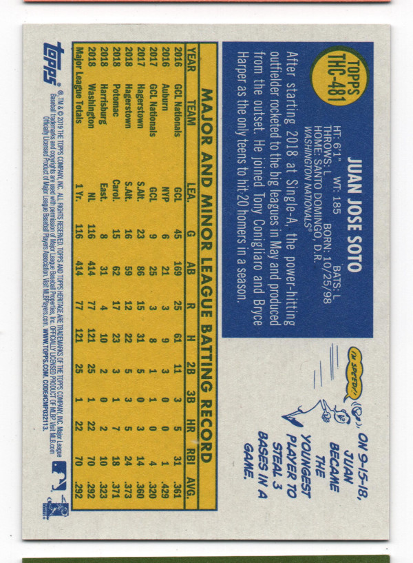 2019 Topps Heritage Hot Box Chrome Purple Refractor #THC-481 Juan Soto