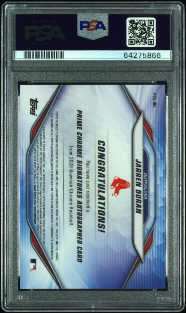 Thanks for your looking at my listing 2020 Bowman Chrome Prime Chrome Signatures Jarren Duran Prime Chr.sig-orange Ref. PSA 10. Let me know if you have any questions!