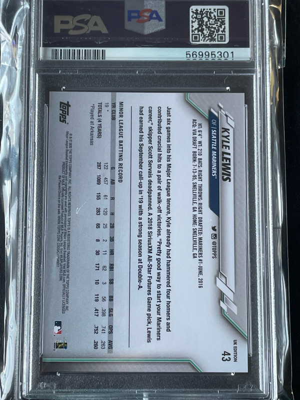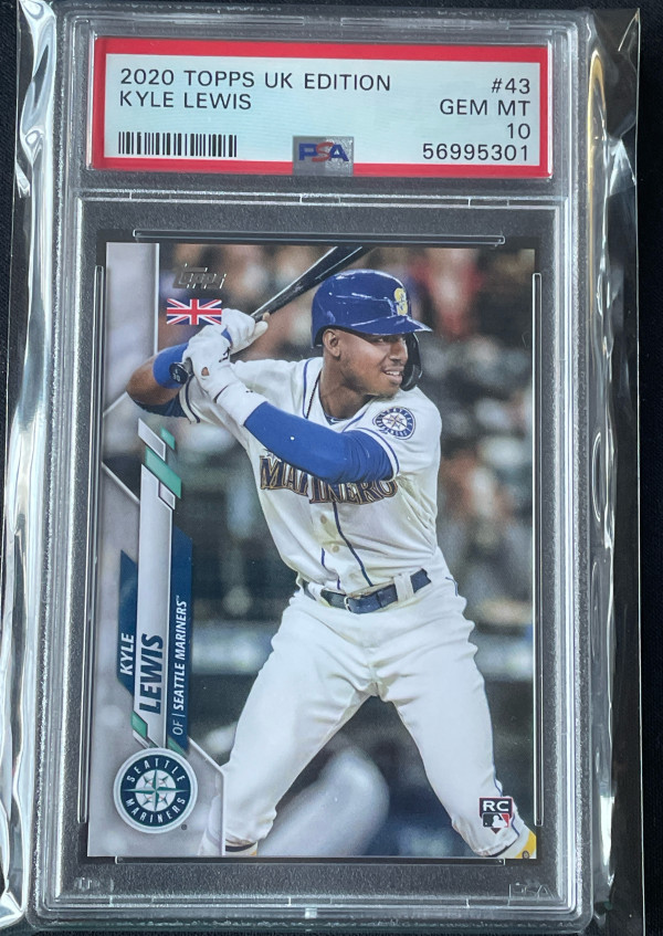 Upon purchase you will receive the exact card pictured. A 2020 Topps UK edition base Kyle Lewis rookie psa 10. Thanks!