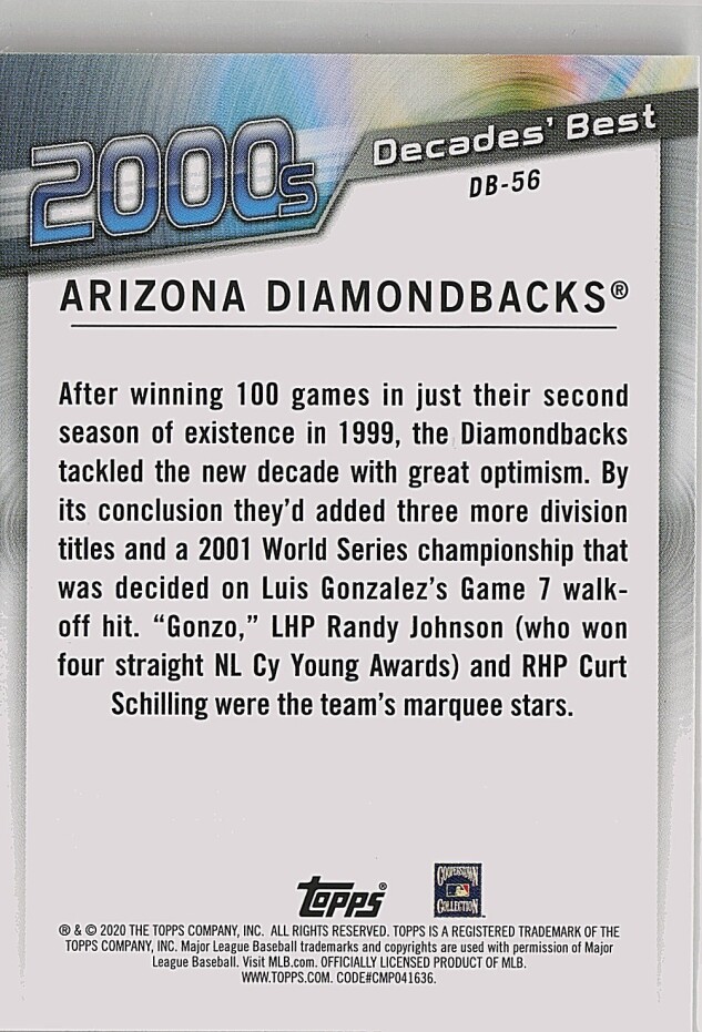 2020 Topps Update #DB-56 Arizona Diamondbacks Decades' Best