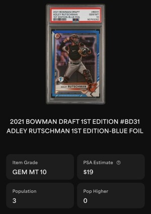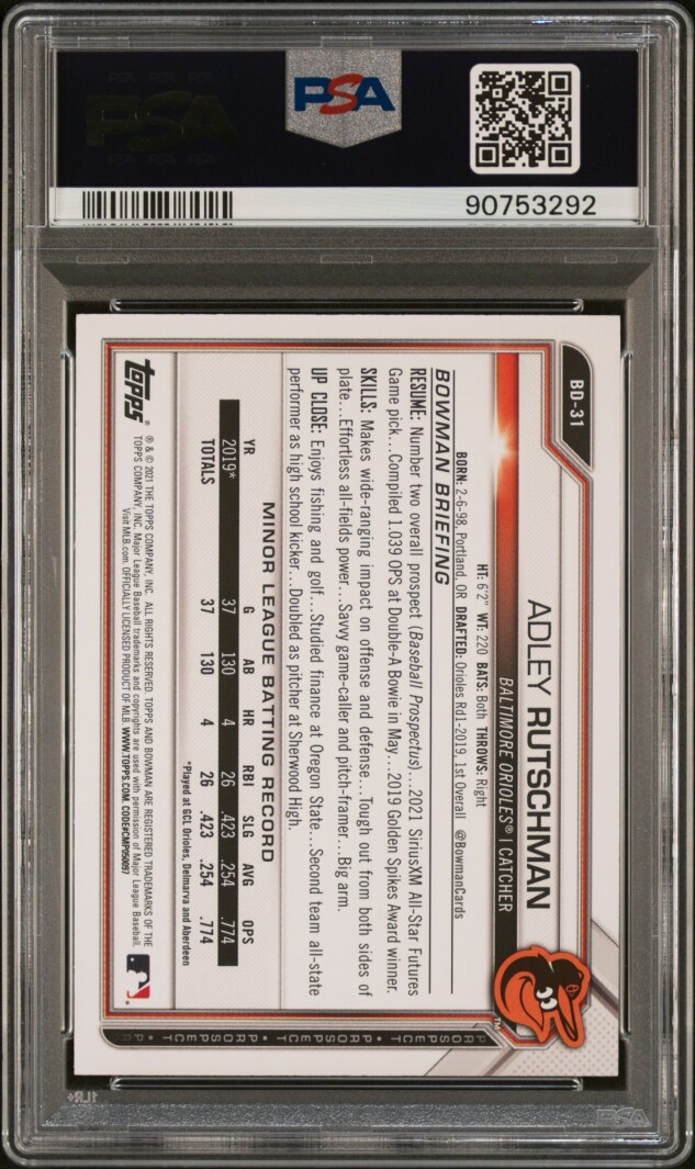 2021 Bowman Draft Adley Rutschman 1st Edition Blue Foil /150
