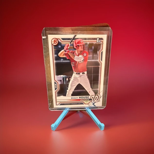 The 2021 Bowman Draft - Brady House #BD-186 (RC) trading card is a standard-sized sports trading card featuring Major League Baseball player Brady House from the Washington Nationals. Manufactured by Topps in 2021, this original baseball card is part of the 2021 Bowman Draft set and is a base card in English language. With a focus on showcasing Brady House, this collectible item is a must-have for fans and collectors looking to add to their sports trading card collection.
