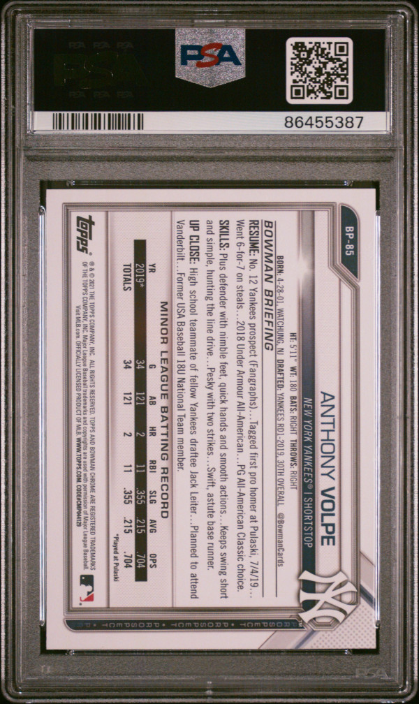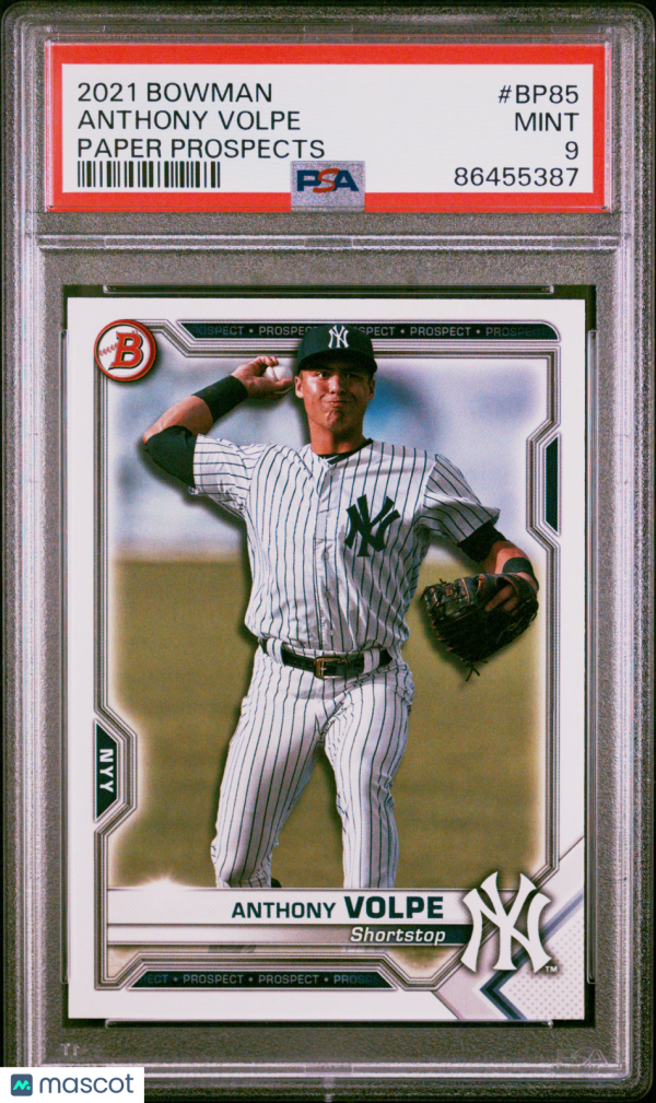 You are purchasing a 2021 Bowman Paper Prospects Anthony Volpe #BP85 PSA 9. You will receive the exact card in the photographs. Thank you for looking. Listed with Mascot.