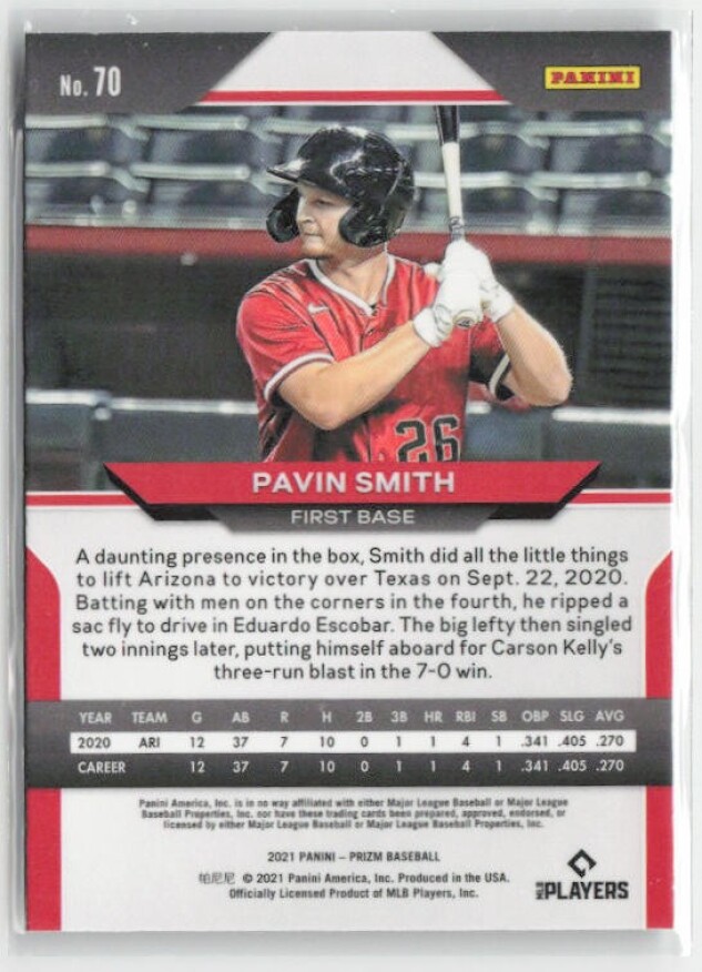 You are purchasing a 2021 Panini Prizm Pavin Smith #70 Silver Prizm. You will receive the exact item in the photographs. Thank you for looking.