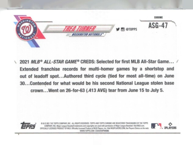 2021 Topps Chrome Update #ASG-47 Trea Turner 2021 All-Star Game