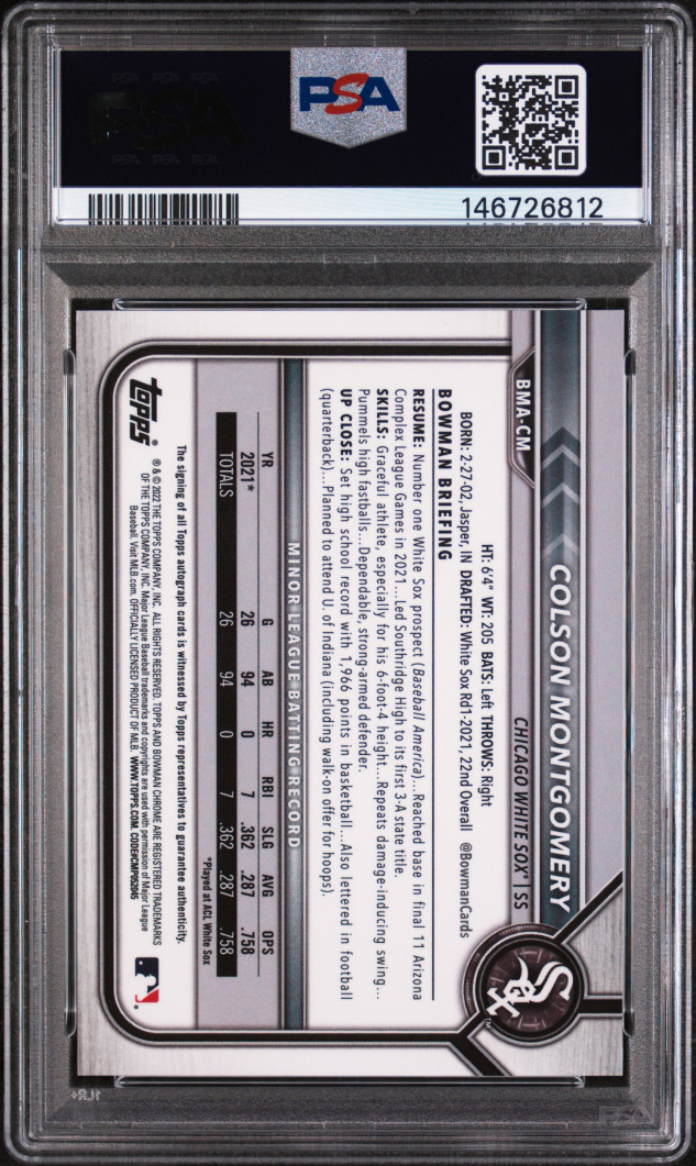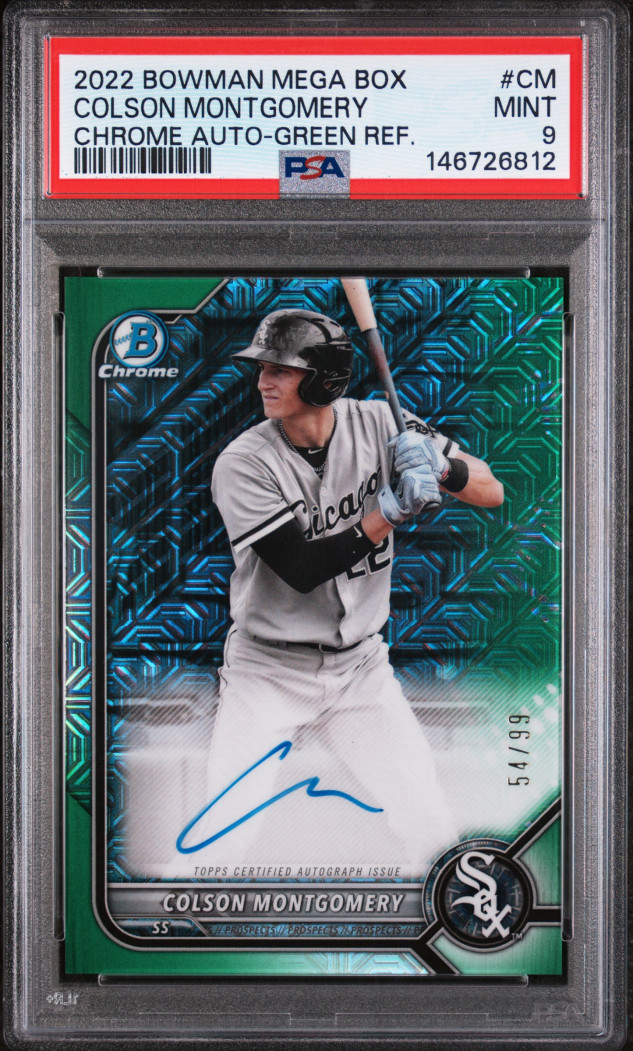 2022 BOWMAN MEGA BOX COLSON MONTGOMERY CHROME AUTO REFRACTOR /99. PSA 9. JUST BACK FROM PSA