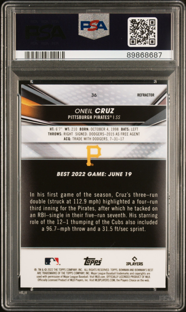 2022 Bowman's Best Oneil Cruz Refractor PSA 9!