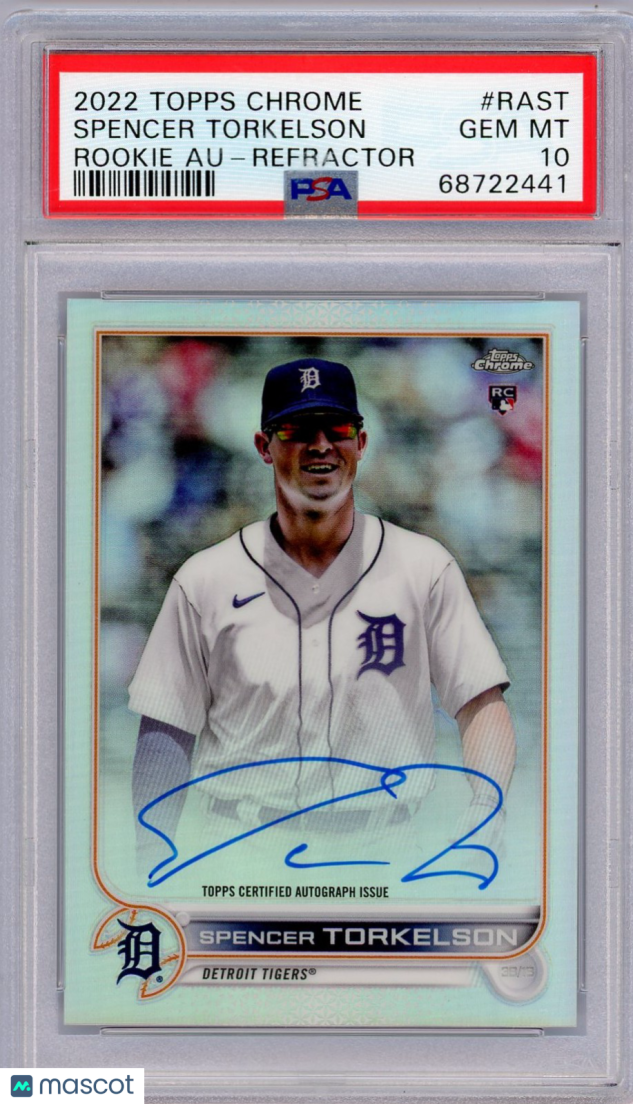 You are purchasing a 2022 Topps Chrome Rookie Autographs Spencer Torkelson #RAST PSA 10. You will receive the exact item in the photographs. Thank you for looking.
