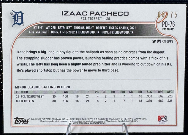 2022 Topps Pro Debut Izaac Pacheco Aqua /75 #PD-76