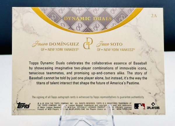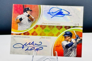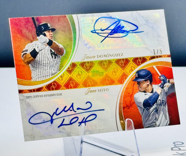 2023-24 Topps Dynamic Duals Jasson Dominguez/Juan Soto Auto /5 red