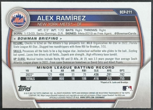 2023 Bowman Chrome Alex Ramirez Mojo #BCP-211