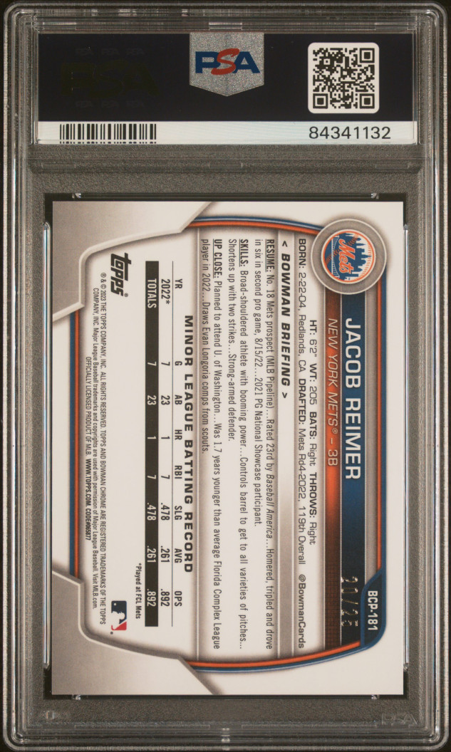 2023 Bowman Chrome Prospects Jacob Reimer Prospects-Orange Ref
