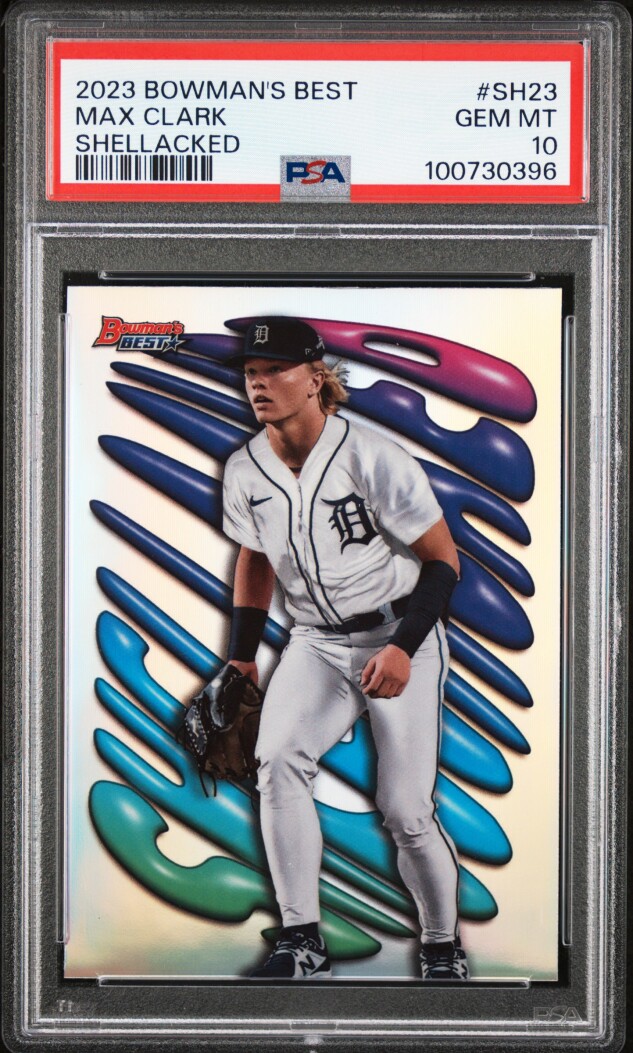 2023 Bowman's Best MAX CLARK Rookie Card RC SHELLACKED REFRACTOR SSP INSERT #SH-23 - GRADED PSA 10 GEM MINT - Detroit Tigers