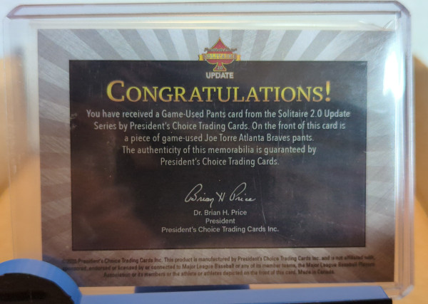 2023 Joe Torre Presidents Choice Game Used Pants 1/1