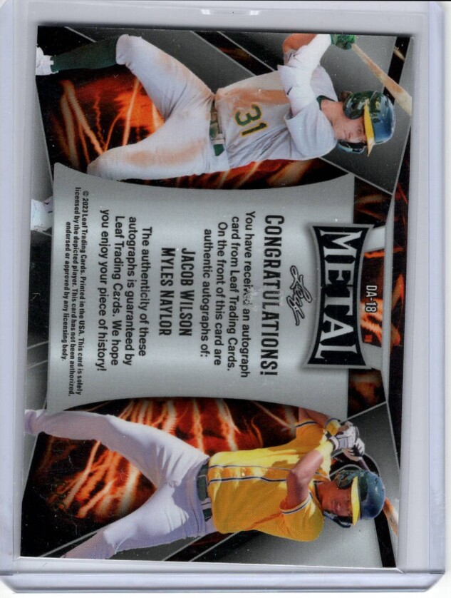 You are purchasing a 2023 Leaf Metal Myles Naylor Jacob Wilson #DA-JWMN /6. You will receive the exact item in the photographs. Thank you for looking.