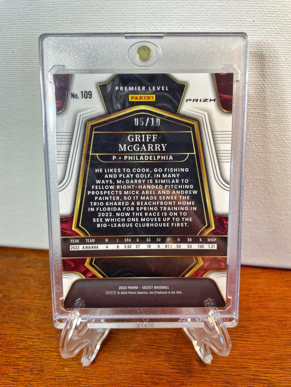 This is (1) 2023 Panini Select GRIFF MCGARY Gold Prizm Refractor #/10 Premier Phillies #109. Thank you for checking out my listing!