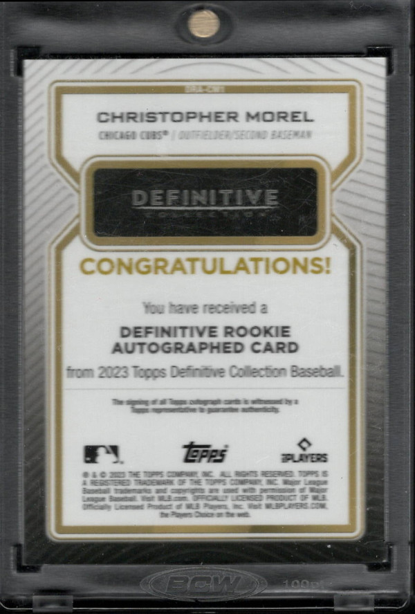 You are purchasing a 2023 Topps Definitive Collection Christopher Morel #DAC-CMO Rookie Autograph /25 RC. You will receive the exact item in the photographs. Thank you for looking.