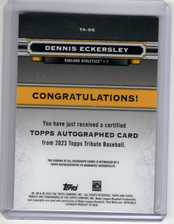 You are purchasing a 2023 Topps Tribute Dennis Eckersley #TA-DE /75 Autograph. You will receive the exact item in the photographs. Thank you for looking.