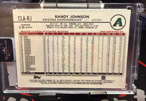 2024 Topps Chrome Randy Johnson on card Auto 19/50