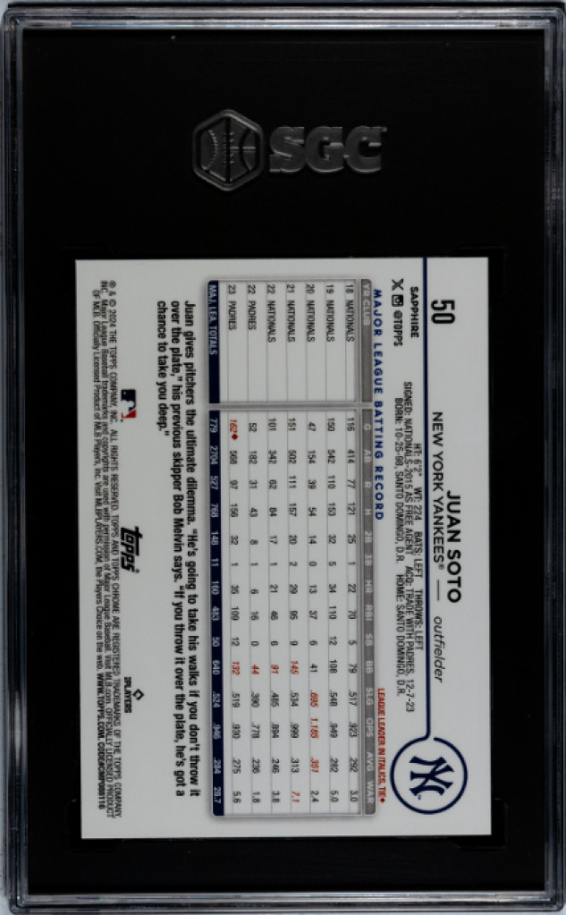 2024 Topps Chrome Sapphire Juan Soto SGC 9