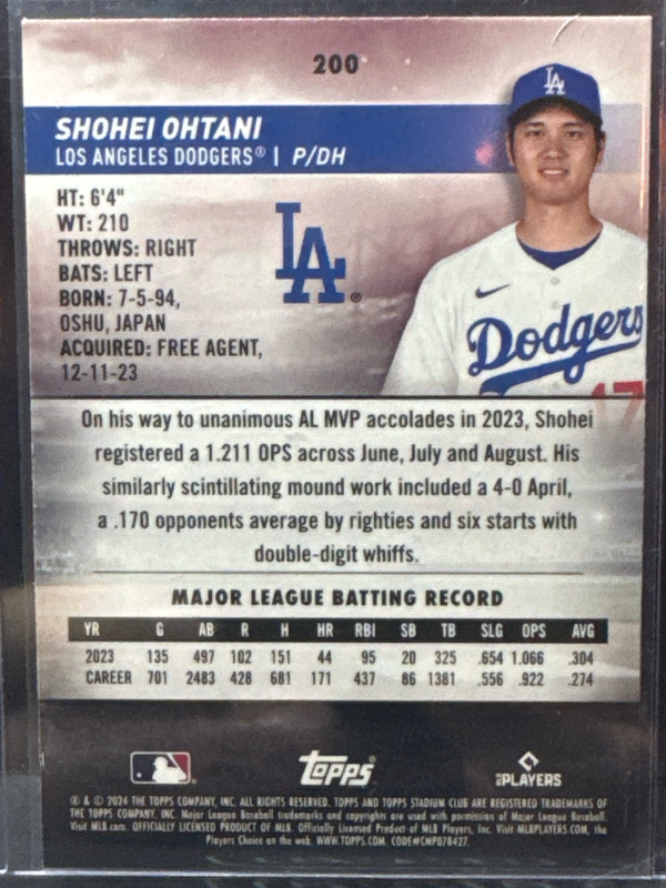 2024 Topps Stadium Club Shohei Ohtani Pink Foil Parallel #200 Dodgers