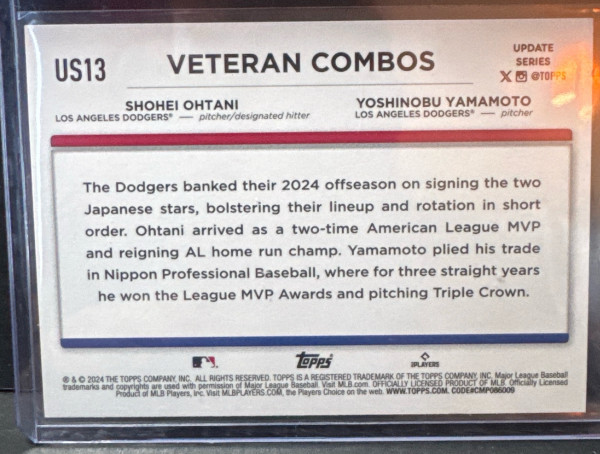 2024 TOPPS UPDATE US13 SHOHEI OHTANI YOSHINOBU YAMAMOTO DODGERS