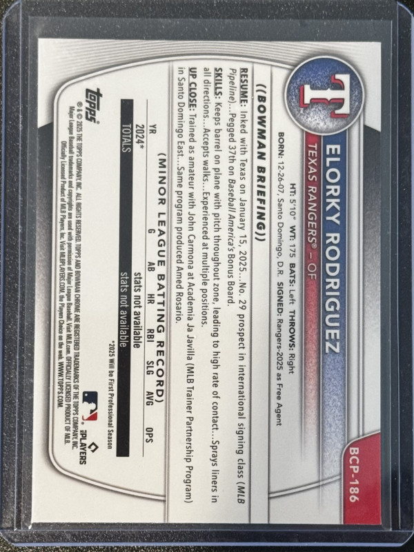 2025 Bowman Chrome Elorky Rodriguez #BCP-186 Mojo Refractor