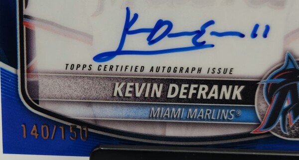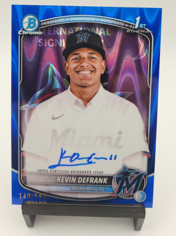 2025 Bowman Chrome Kevin DeFrank Blue Refractor Auto /150 1st Bowman Marlins