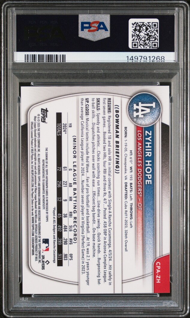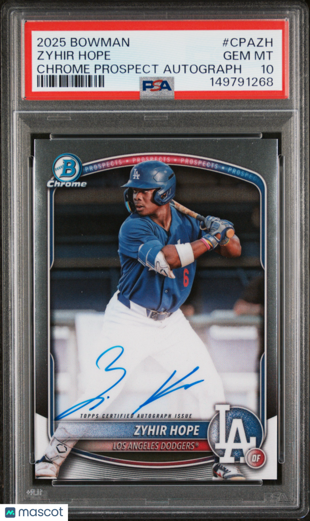 You are purchasing a 2025 Bowman Chrome Prospect Autographs Zyhir Hope #CPAZH PSA 10. You will receive the exact item in the photographs. Thank you for looking.