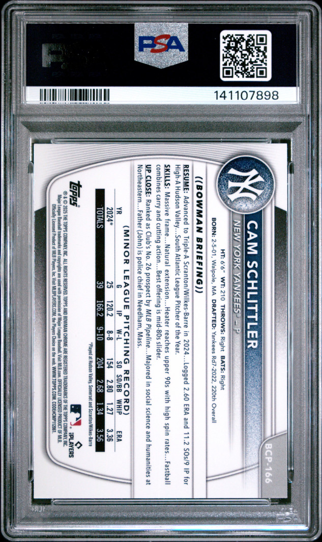2025 Bowman Chrome Prospects Cam Schlittler Prospects-Shimmer Ref