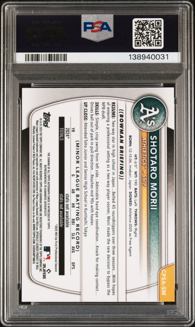 2025 Bowman Chrome Sapphire Edition Chrome Prospects Autographs Shotaro Morii Chrome Prospect Au-Green