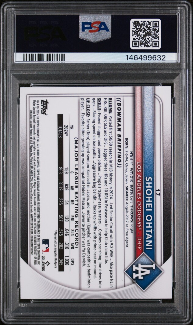2025 Bowman Chrome SHOHEI OHTANI #17 Rare MEGA BOX REFRACTOR - GRADED PSA 9 MINT Los Angeles Dodgers