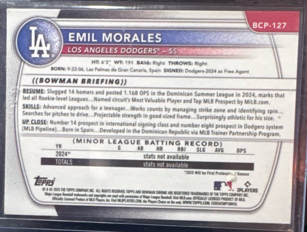 2025 Bowman Emil Morales #BCP-127 Reptilian PEARL REFRACTOR SSP