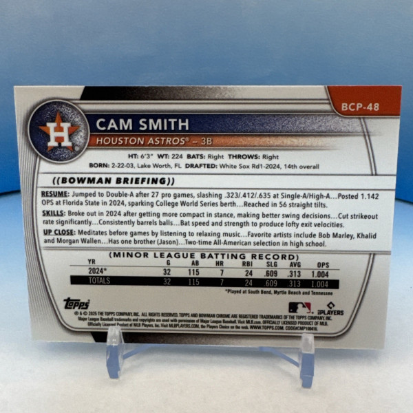 You are purchasing a 2025 Bowman Sapphire Edition Cam Smith #BCP-48 [Base] Rookie Insert. You will receive the exact item in the photographs. Thank you for looking.