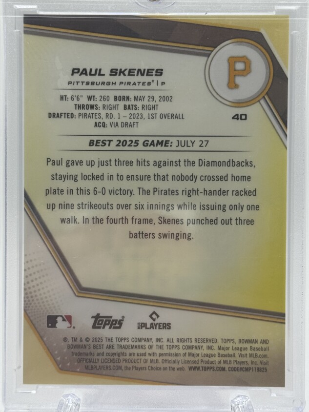 2025 Bowman's Best #40 Paul Skenes Orange Refractors # 6/25