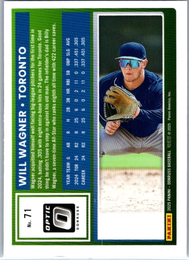 This is a nice example of a 2025 Donruss #71 Will Wagner Optic