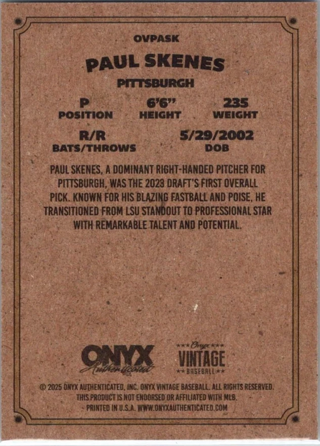 This is a nice example of a 2025 Onyx Vintage #OVPASK Paul Skenes