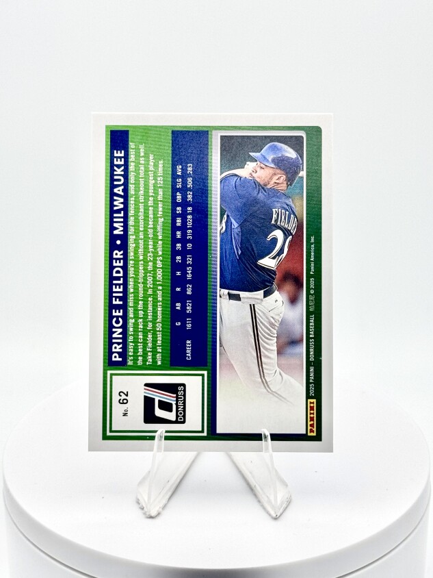 You are purchasing a 2025 Panini Donruss Prince Fielder #62 Carolina Blue Laser 168/249. You will receive the exact item in the photographs. Thank you for looking.