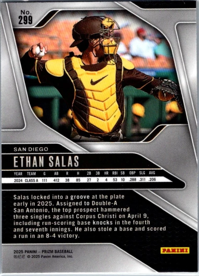 This is a nice example of a 2025 Panini Prizm #299 Ethan Salas