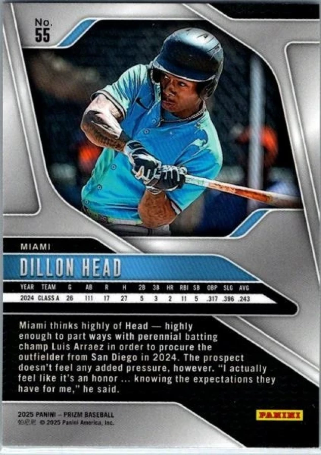 This is a nice example of a 2025 Panini Prizm #55 Dillon Head